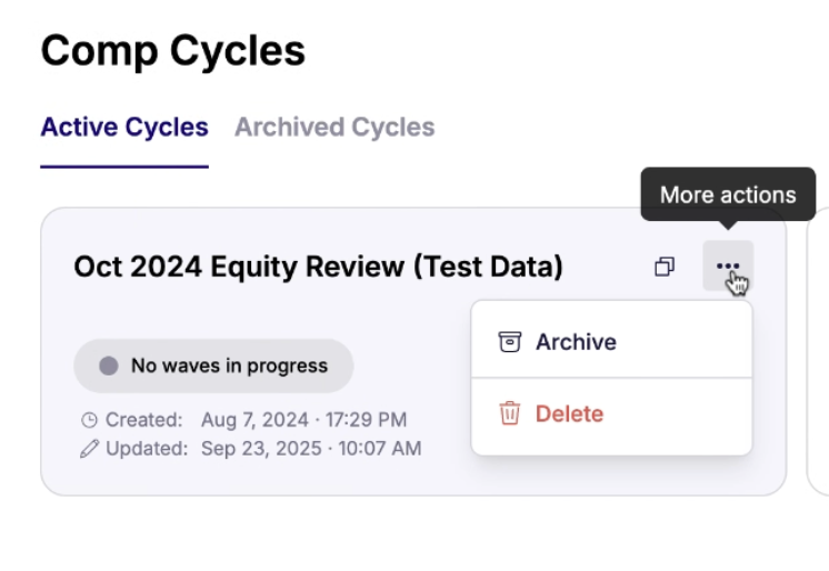 At the upper left of your screen, under the Comp Cycle title, you’ll see two tabs: Active Cycles and Archived Cycles.