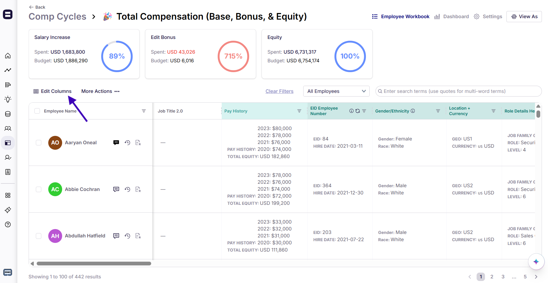 How to Edit Columns in your Comp Cycle This article covers how to edit columns To edit columns in your comp cycle, navigate to the comp cycle workbook and click "Edit Columns." To learn more about making changes to columns, click here!
