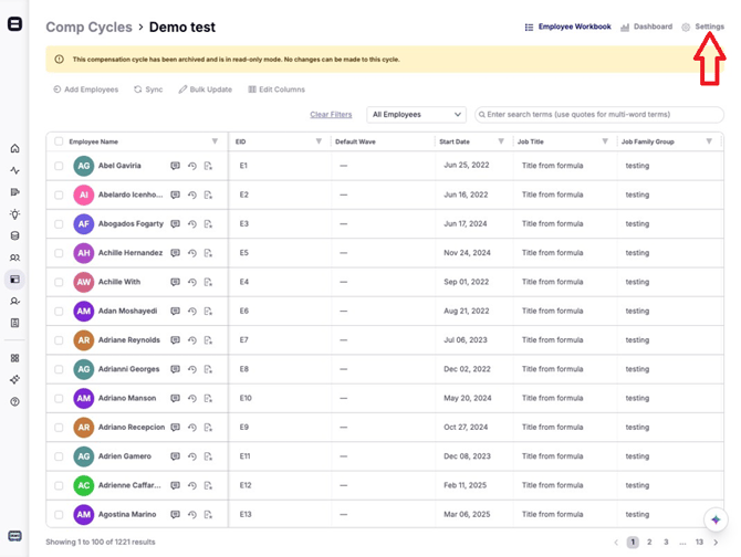 Follow these steps to manage your archived compensation cycles in Pequity: